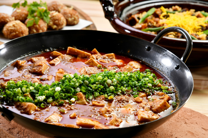 - Spicy Mala Tofu with Lamb / Deep-fried Onsen Manju (Sweet Bun)